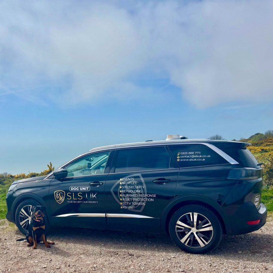A dedicated dog unit vehicle, one of three Peugeot 5008 units in the fleet, supporting K9 deployments across the UK, including patrols, searches, event security, asset protection, and rapid response to incidents requiring specialist dog handling support.